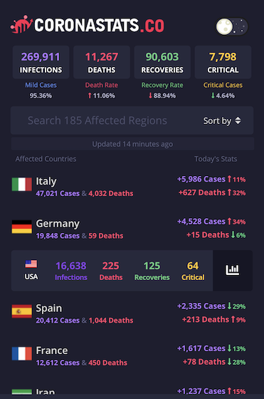 | COVID-19 U.S. Stats for 2020-3-20 | |