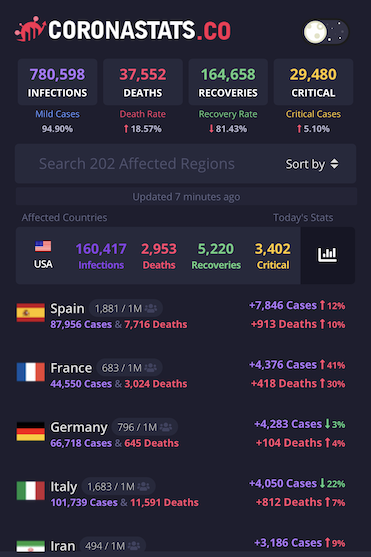 Here is the normally included corona stats from today: