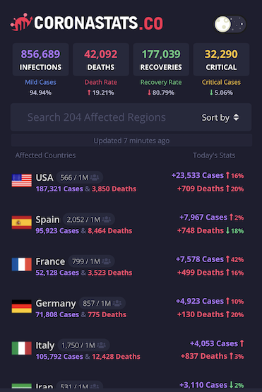 | COVID-19 U.S. Stats for 2020-3-31 | |