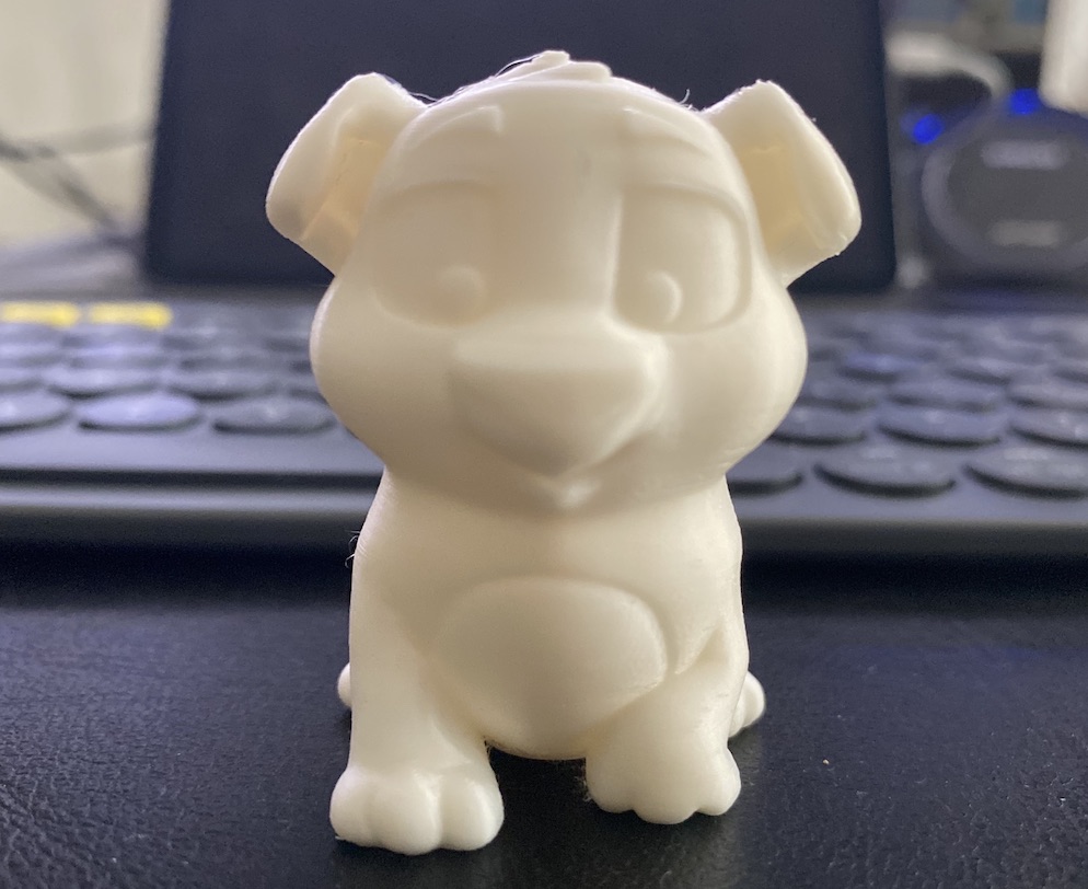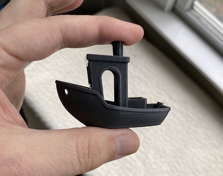 I played with some settings and last night printed this. It’s called Benchy. It’s meant to stress-test 3D printers and defects in it can point out tweaks you can make to your printer or its settings to make better prints. This is fresh off the print bed with no touchups. Overall, I’m really happy with how it came out: